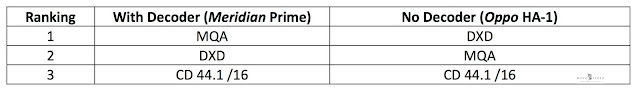 In this ranking therefore the un-decoded MQA is preferred to the CD and with a decoder it is preferred to the original.