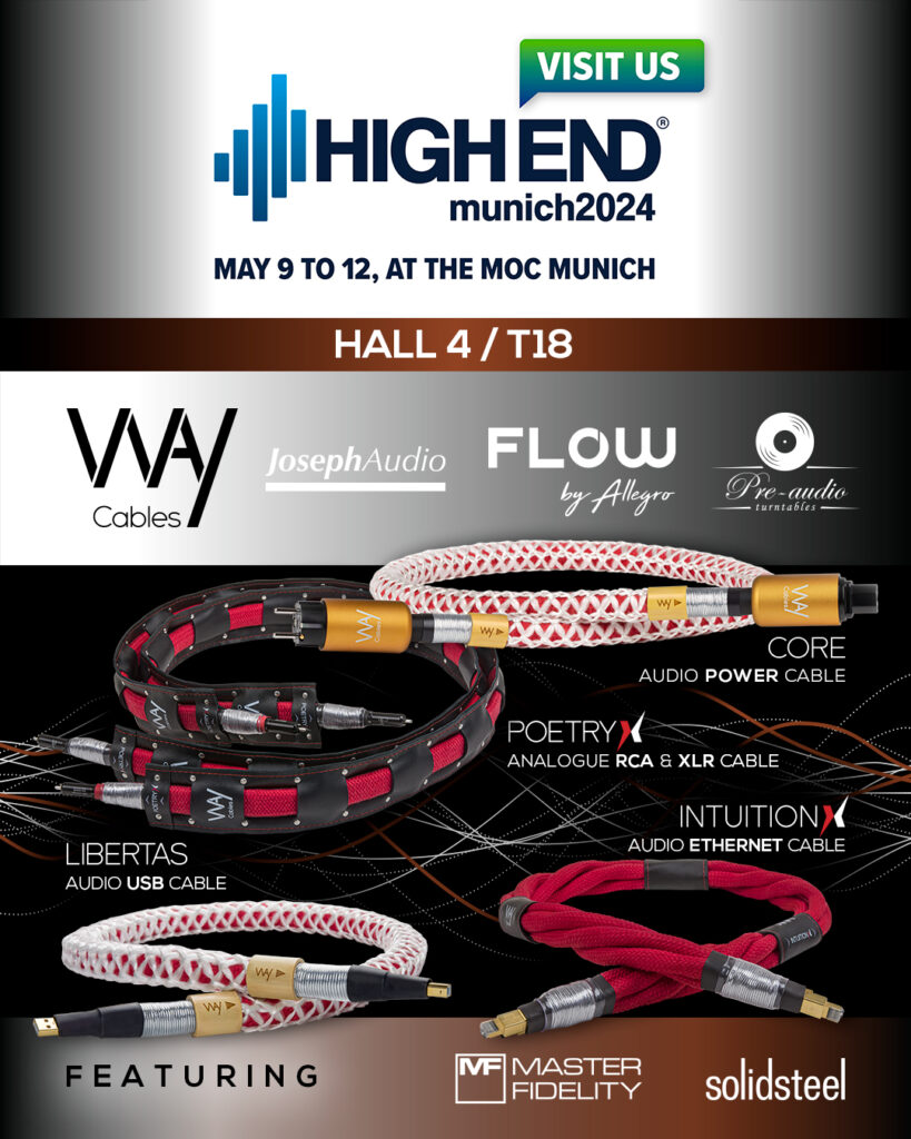 Way Cables writes: “Be sure to hear these exciting new reference components! An international consortium of manufacturers has come together to demonstrate a magical system driven by a single aim — to achieve consummate state-of-the-art performance!