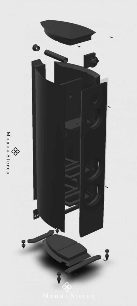 All these ground-breaking new drive unit and crossover developments are housed in a beautifully curved, exquisitely finished inert enclosure. The hybrid ‘Resonance Suppression Composite’ (RSC) cabinets have a minimum thickness of 22mm and vary up to 50mm for optimal performance. The 4° tilt improves the time alignment of sound to listener, whilst the 6mm ultra rigid aluminium front baffle firmly houses the drivers and isolates any cabinet resonances from the listening environment.