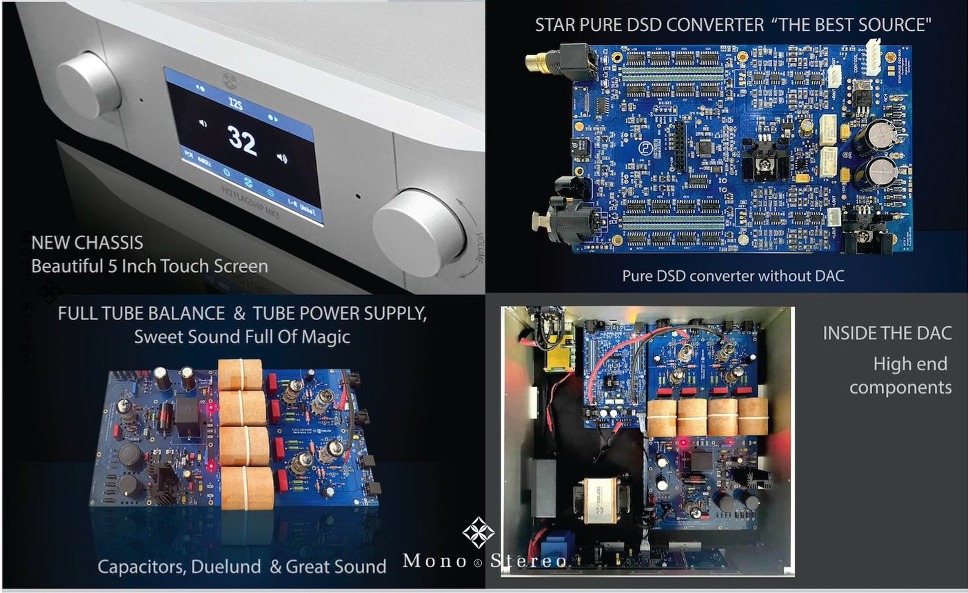 Star Pure DSD has an analouge output design that surpasses all previous designs. The power supply is upgraded with 6Dj8 tubes instead of MOSFETs. This gives a great experience and creates an incredibly impressive soundstage.