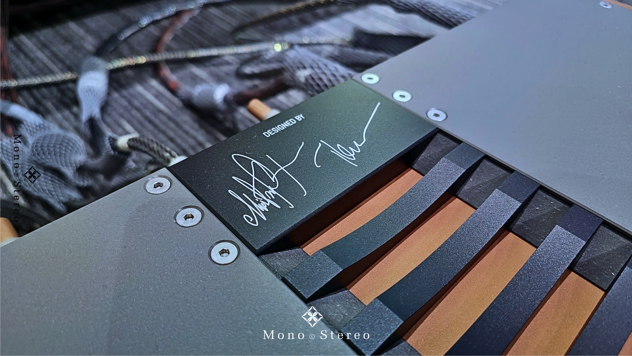 Audio Group Denmark high-end audio trinity. The Aavik Acoustics i880 Class A integrated amplifier drives the Børresen Acoustics loudspeakers in the Audio Maestro showroom. All cables from Ansuz Acoustics.