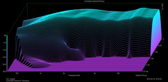 The low order crossover filter topology is fine-tuned in phase alignment of the already time coherent (by carefully sloped cabinet) mid-bass and tweeter drivers. Phase alignment is not limited to the crossover frequency area but in the entire band of both drivers beyond 20khz.