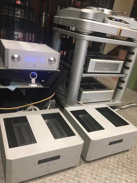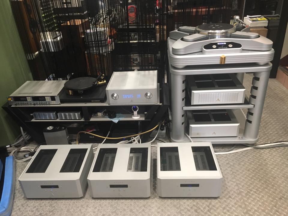 Aesthetix system at Golden Rhyme in Taiwan! Metis line stage, Io Eclipse phono stage, Atlas Stereo Eclipse (highs), Atlas Mono Eclipse (pr, lows), Focal Grand Utopia III EM speakers, Acoustic Signature Invictus Turntable, Acoustic Signature 9000 tonearm, Bluelectric 4qd cartridge, Kuzma Stabi S turntable,Argento cables etc.