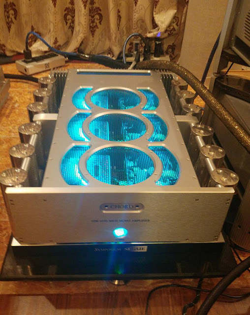 Chord (England) Amps, CD player and Preamp with Clear audio turntable and arm on top with Q3 speaker.