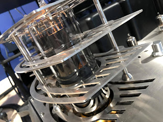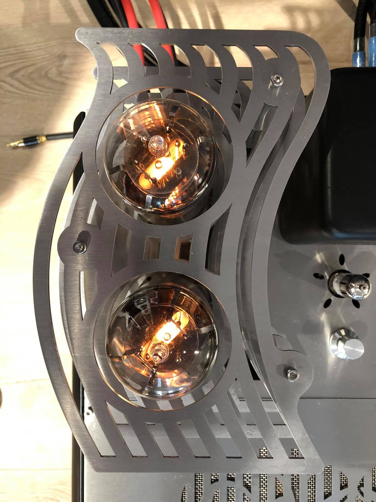 Aries Cerat Genus tube integrated amplifier with 845 ELROG valves next to Vitus and Gryphon power amplifiers partnered with Aries Cerat Helene DAC, Aurender W20, Métronome Audio l’AQWO CD/SACD, Signal Projects Hydra and Legato Audio Fuocoso cabling and Vimberg Mino speakers. At Alchemy of Sound Brussels, Belgium.