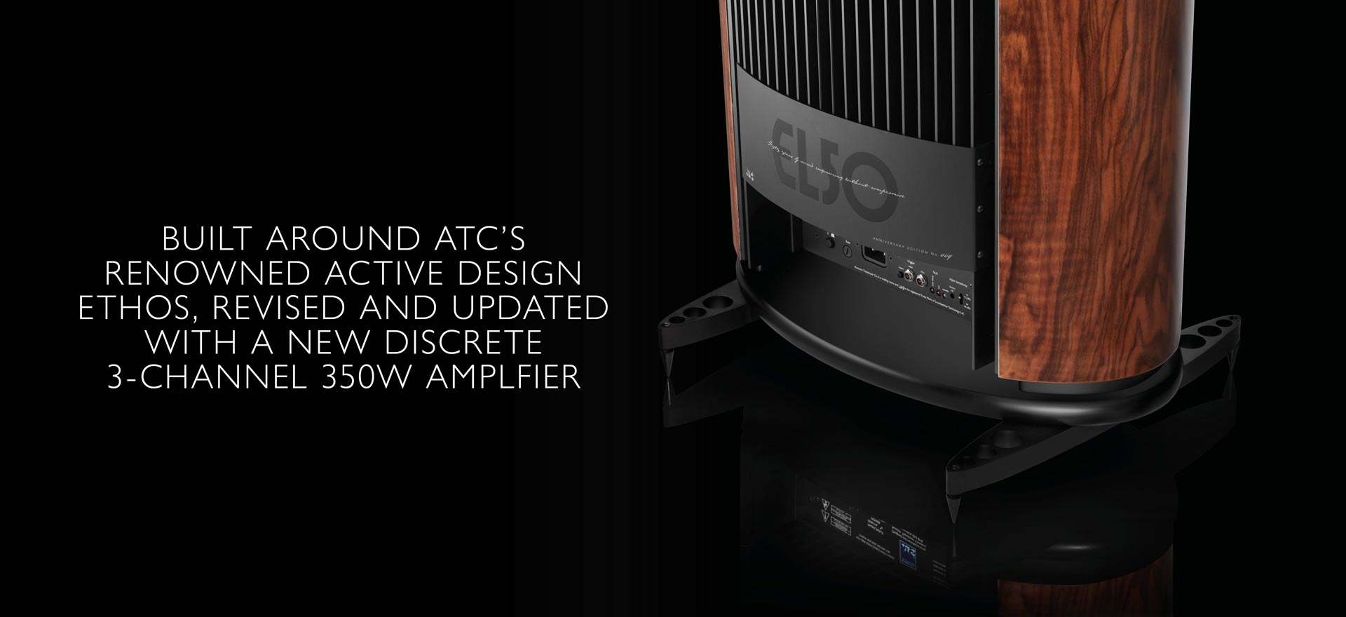 ATC EL50 Anniversary, is the latest evolution of the legendary ATC 50 loudspeaker design, featuring discrete active tri-amp technology first deployed by the SCM70 in the 1990s and refined through the SCM50 Anniversary speaker in 2004 and the SE Series in 2014. Its industrial design draws from the EL150, released in 2006, the first ATC loudspeaker to employ an elliptical enclosure and designed by Billy Woodman. Leather detailing on the front face and beautiful hand-selected veneers further elevate the design.