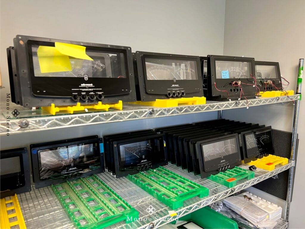 Audio Research writes. “The meter is a sandwich construction. We source the acrylic locally and etch the scale on each one with our laser. The motors are supplied by an American company we have worked with for at least 40 years.