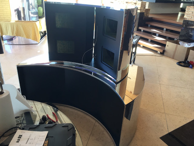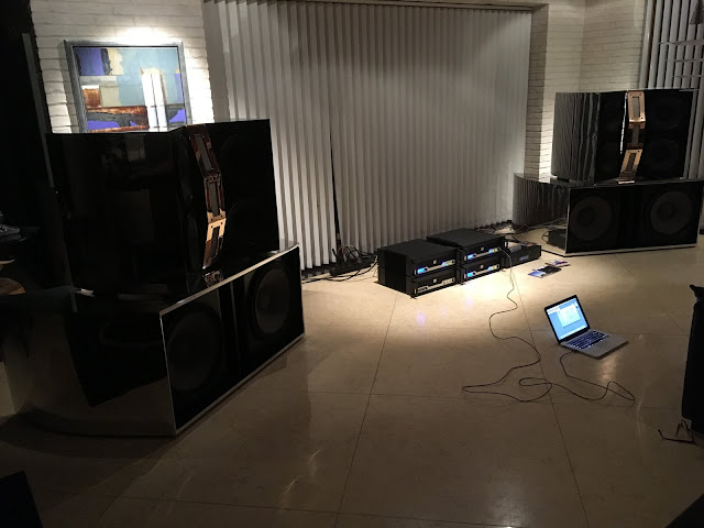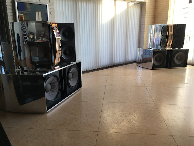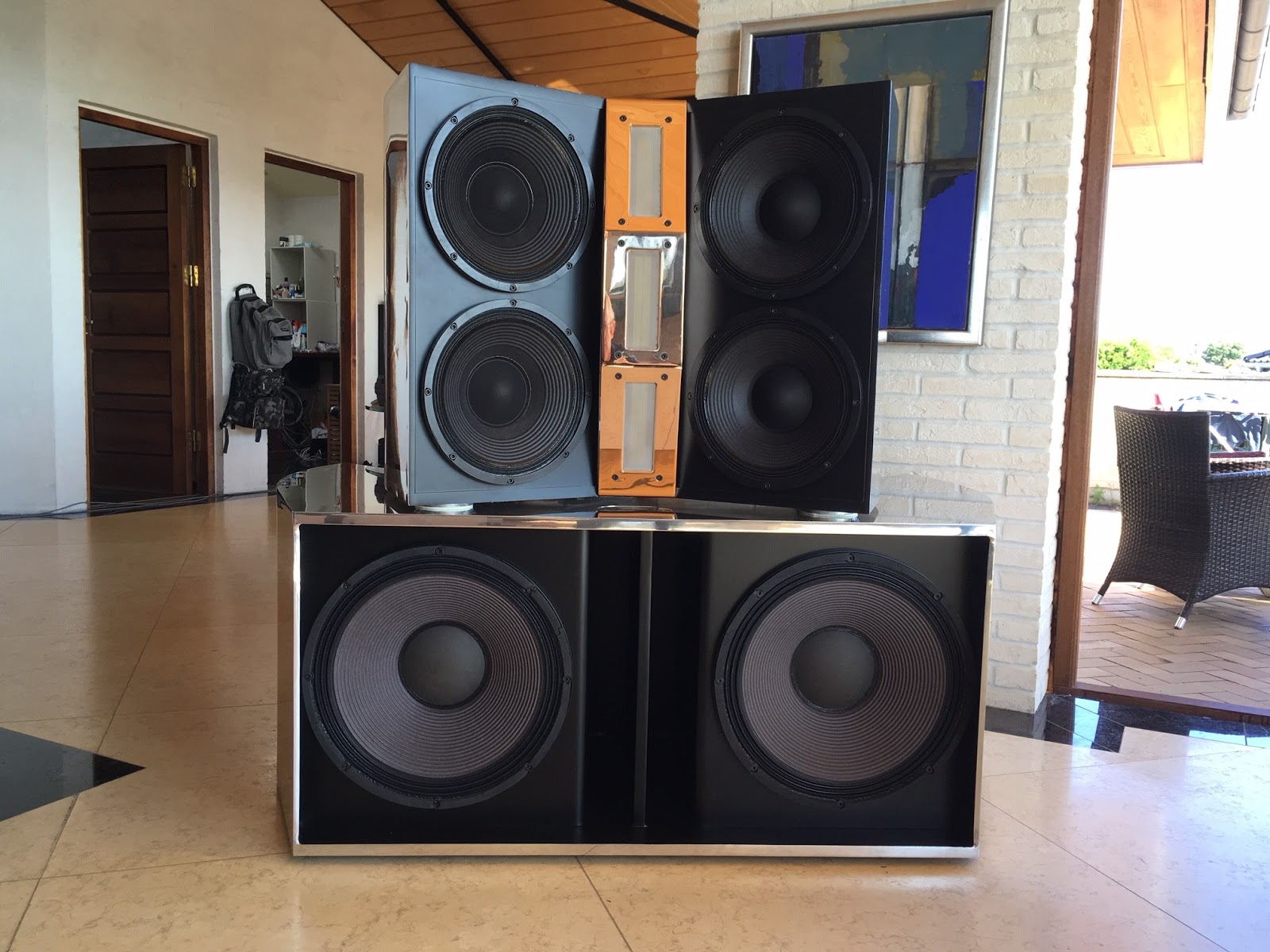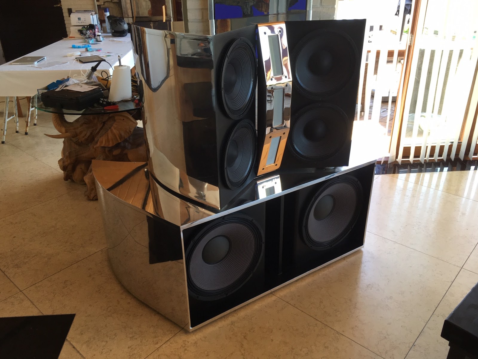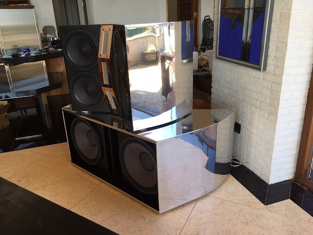 Audiolabs DYNAMAX writes: “After 2-3 years in designing, prototyping, measuring and building, today I can announce my first new DYNAMAX speaker design in +20 years. I wanted to create something stunning and different from what we have seen and heard yet. The system consist of dual 18″, quad 12″ and triple 6″ Stage Accompany ribbons. Enclosures are sanded and polished aluminum, weight is approximately 160 Kg for the woofer unit and 130Kg for the top unit.”