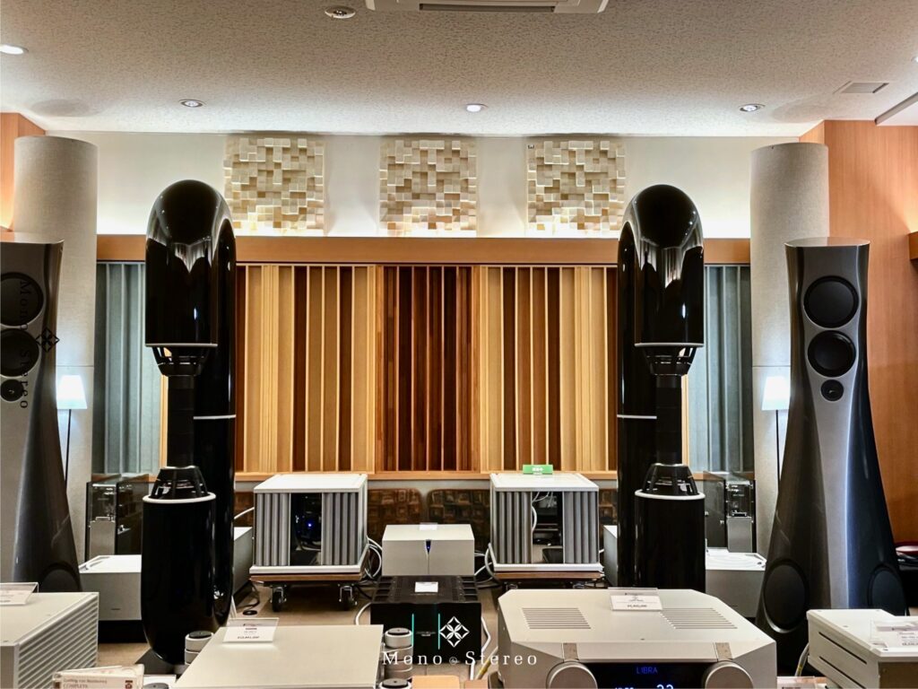 A demo pair of Bayz Audio Counterpoint 2.0 speakers is ready for presentation at the Dynamic Audio 5555 high-end audio store in Tokyo, Akihabara, Japan. Via Zephyrn Inc.