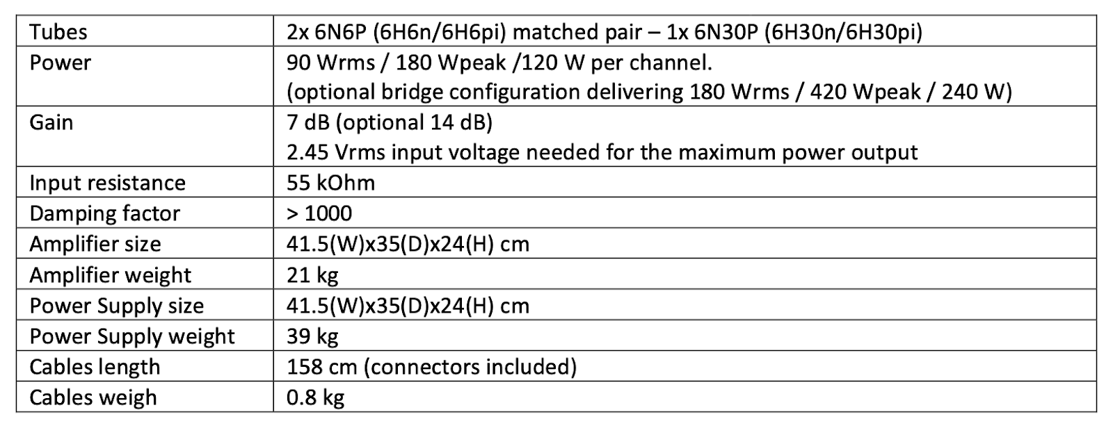 The two stages design, one for the voltage amplification, one for the current amplification allows unaltered delivery of the energy from the input to the output with a full scope of signal integrity.