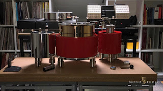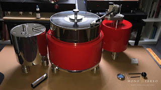Photos of DaVinciAudio Labs’ customer and a friend setting up the all new and custom made Grand Reference V4 turntable in Ferrari Rosso Corsa finish, with mirror aluminum polished motor and newly designed V4 platter (upgrades for In Unison and Gabriel from MK II are possible). In the back you can spot InUnison MK3 turntable.