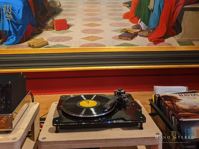 Diptyque Audio DP160 speakers partnered with Jadis DA88S tube integrated amplifier and Vertere Acoustics DG-1 Dynamic Groove record player.