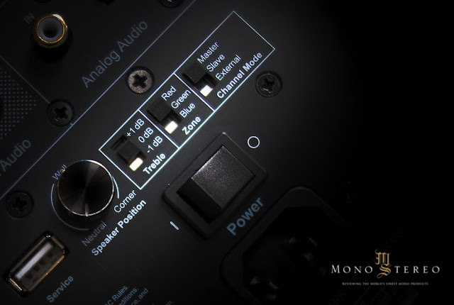 The bass energy can be reduced to suit the speakers proximity to the wall, as well as the high frequencies can be levelled up/down one dB.