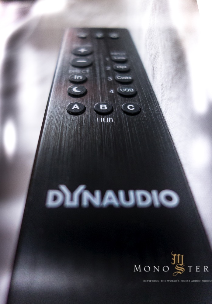 The remote is made of black aluminium, and works like a charm. Earlier on I tested the remote for the smaller Dynaudio Xeo 3’s with a worse result – at least compared with this black beauty. This one really WORKS, you don’t have to point it towards the speakers, just lay it on your table somewhere and it does just what it’s supposed to do. Mute, On/Off, Volume Up/Down all are similar functions that you already know. We found some more features, though, including a DIRECT mode and some A B C Hub knobs meant to be used with the optional Hub, which do transform the speakers into a wireless system. The DIRECT button is used when the signal you feed to the speakers is via a digital cable. That’s also where you get the highest performance, bit wise. Ah, I did not come to this point yet.