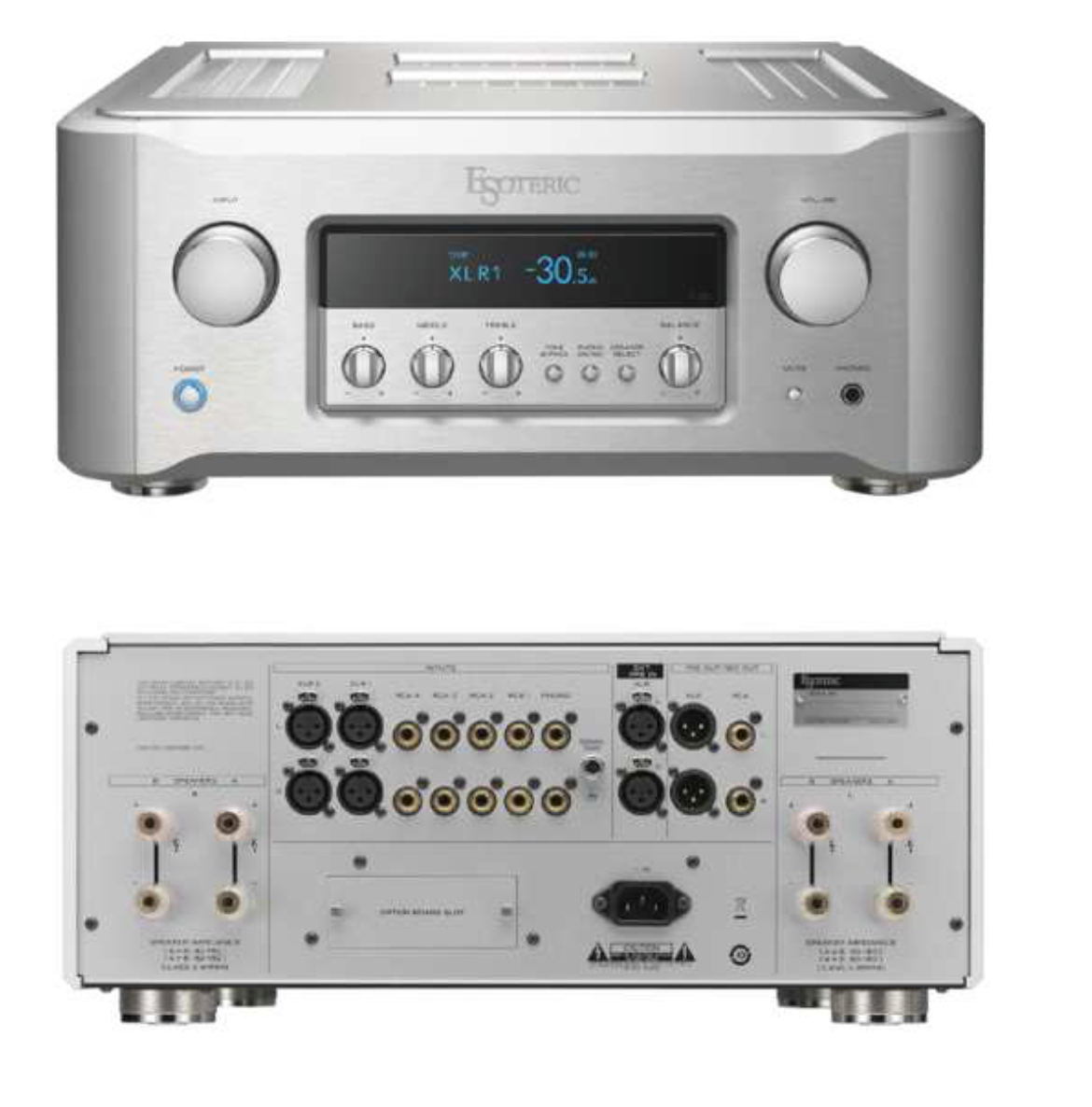 All NEW Esoteric F-05 Integrated Amplifier is equipped with a fully balanced preamplifier very similar to Grandioso C1 line preamplifier. Esoteric F-05 implements high-power amplifier module that comes as trickled down module from Esoteric Grandioso S1. With the output power of 120W into 8Ω and 240W into 4Ω F-05 ensures the dynamic impact, deep soundstage and ability to convey core expressiveness of the music. Esoteric F-05 Integrated Amplifier was designed with the clear goal of deriving pure, unaltered audio signal from the ESOTERIC digital players.