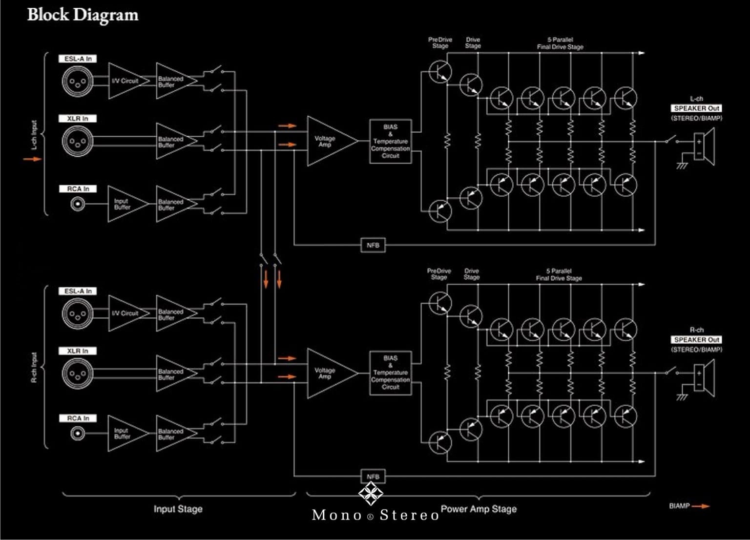 Esoteric writes: The monoblock M1X embodies Esoteric’s idea of the ideal amplifier. The dynamic sound of the M1X, produced by a completely redesigned drive stage and a powerful power supply unit that incorporates an enormous amount of material, has captivated audiophiles around the world.