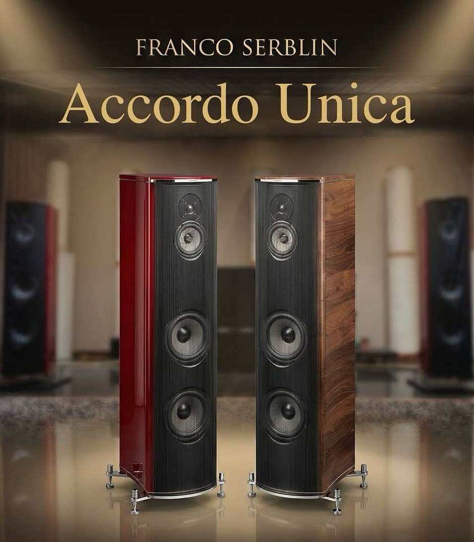 Franco Serblin Studio Accordo Unica speakers in beautiful Violin Red and Walnut finish. Unmistakably Italian by all means.