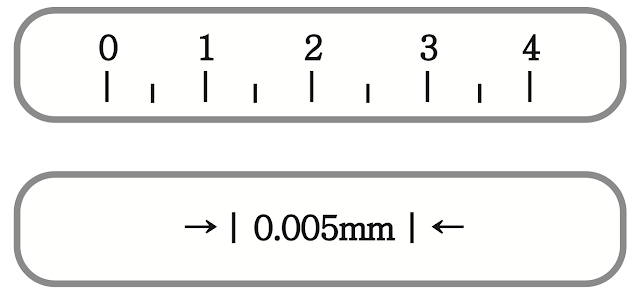 There are laser engraved scales around the bottom ring and 0.5mm spacing on each wheel. By turning the ring you can adjust the height and level in 0.05mm increments for each scale.