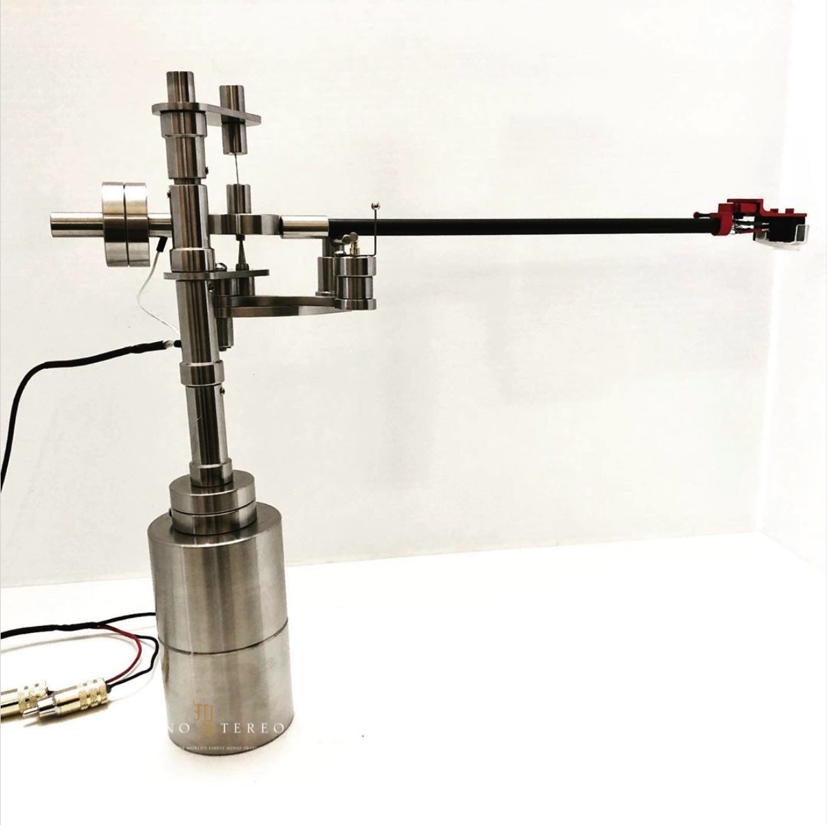 Integrityhifi TRU-GLIDER Pendulum Design Standalone Tonearm. The black aluminum arm is virtually weightless with zero weight at the pivot point, unlike conventional tonearms, be it bearing design or unipivot where tonearm mass plays a critical role at the pivot point. No Friction, No Bearing, No Antiskate & No Azimuth. This model is sitting 10” high for a special table. 12 & 14” standard arms but can be customized to any size arm.