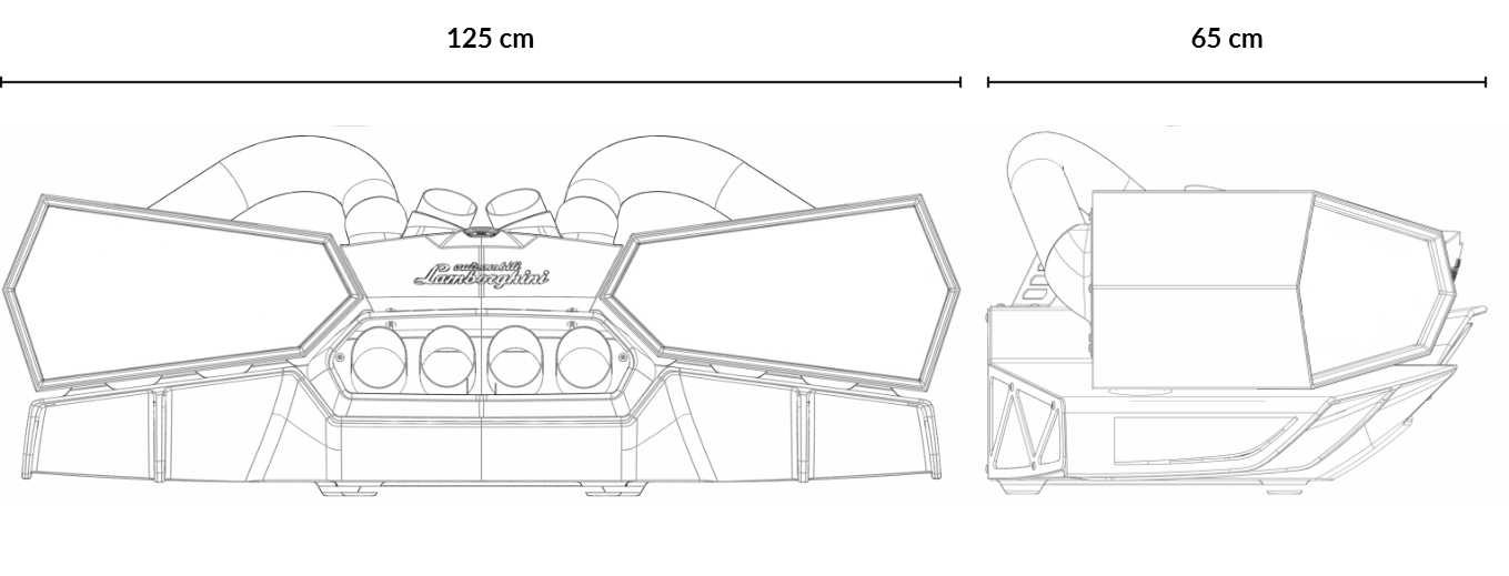 The central element is the original exhaust, which puts all elements into proportion, giving the impression of a real car.