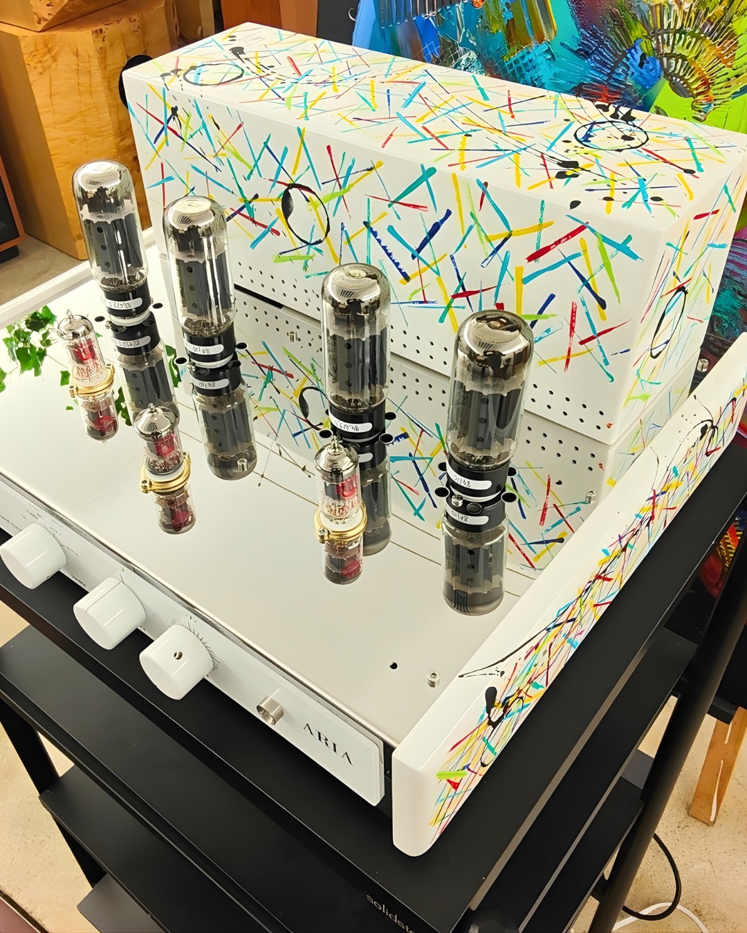 Each Jadis Electronics Aria can be personalized by Toile de Lu, a Carcassonne-based artist involved in this local collaboration. Side panels, top cover, finishes—every piece becomes a unique creation, accompanied by its certificate of authenticity.