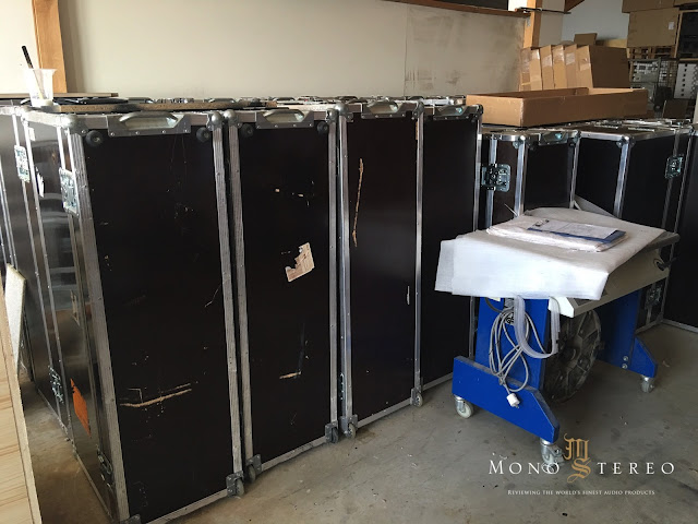 Kaiser Kawero The Cleopatra Subwoofer production March 20, 2016 Matej Isak Kaiser Kawero The Cleopatra Subwoofer (24″ driver) frame construction in production with Hans Jurgen posing to get the idea real life size and full stack of flight-cases waiting for the next speakers shipping.