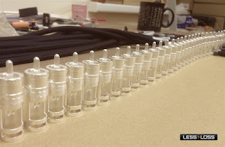 LessLoss “C-MARC™ is not like ordinary cable, where you can tear off the plastic insulation in an instant with a wire stripper tool. With C-MARC™, you have to in a sense “create plastic” where you want stiffer protection. We carry this out by hand winding fine cotton thread and adding a few carefully placed drops of Cyanoacrylate glue. The cotton fibre self-amalgamates in reaction to the glue, forming something akin to an epoxy impregnated fibre laminate when it hardens. Thus, the prepared endings’ contacts are cemented into place before we attach the connectors. It takes a skilled technician with a steady hand and a good hour or more of labor to prepare just a single ending. Not your most production friendly process, but one that is so hypnotically beautiful in resulting quality and maturity of tone, we are sure this is the winning formula for superb sound you’ll want to stick with!”