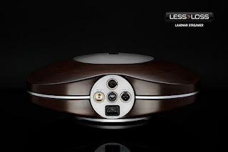 What may appear to be just a cool design is actually purpose-built engineering. The ~1cm strip of metal you see around the edge of the device is actually a thick plate of steel which separates the transformer from the sensitive electro-magnetic low jitter process which defines the circuitry of the Laminar Streamer. Many manufacturers with an ambitious project such as this take the power supply out of their devices and make a second enclosure for them. Then they run into problems resulting from antenna effects because of their long power supply umbilicals connecting the two.