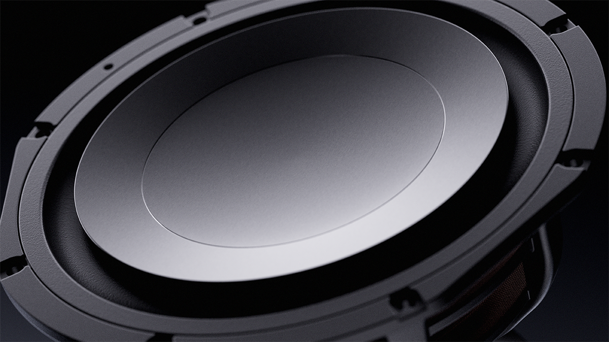 For both the 6″ and 8″ drive units, Linn designed a hard aluminium diaphragm. Strong, rigid, and light, it allows break-up behaviour to be pushed well beyond the operating frequency range while keeping moving mass low to improve efficiency. Carefully optimised coupling of the diaphragm to both the surround and Pistonik motor system pushes resonance frequencies higher still and reduces their magnitude.