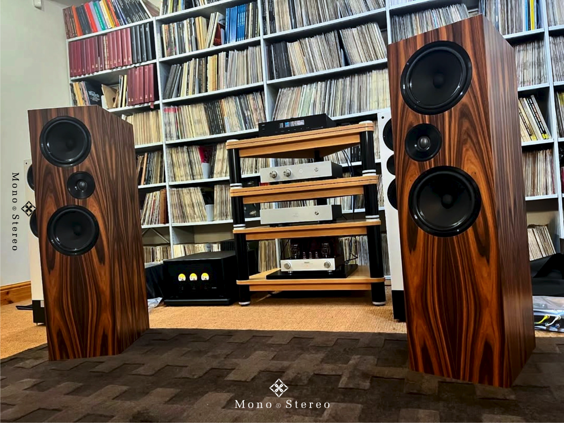 Living Voice writes: “Our second music room has become our R80 speaker ‘running-in’ room. This is a gorgeous pair of Santos R80 OBX which come with matching external crossovers. We’ll be preparing them for departure to France in a couple of days. Bon voyage.”