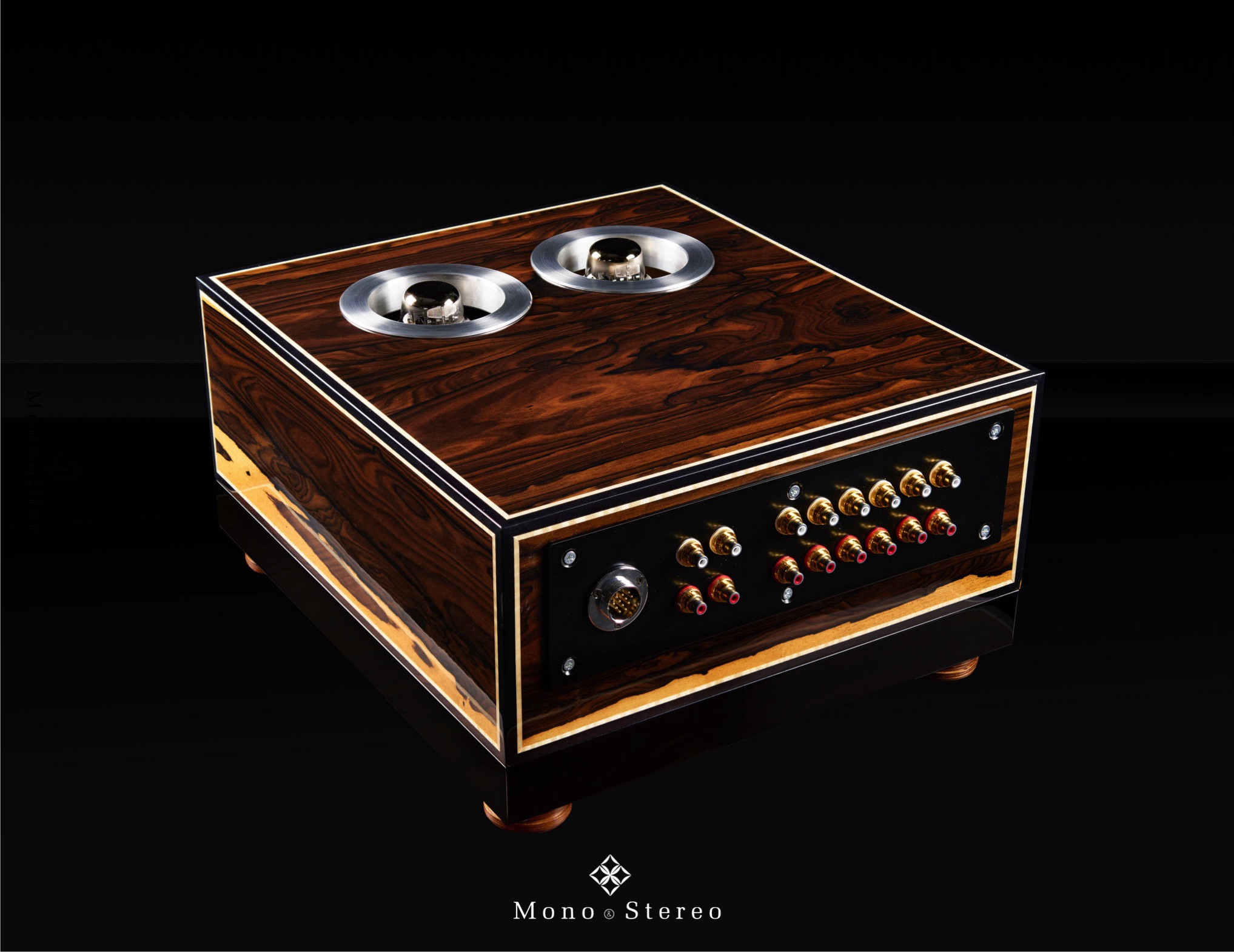 For this reason, as with the 211PP amplifiers, 40mm thick Panzerholz wooden bases are used in the main chassis and the power supply unit.