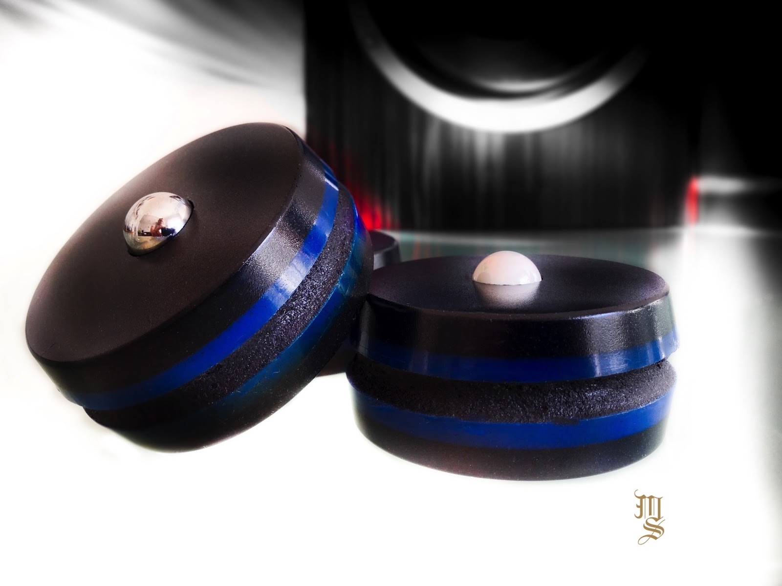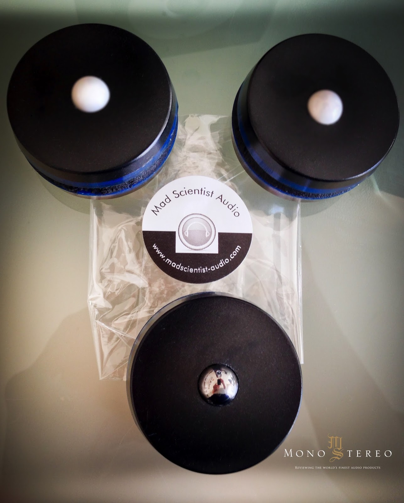 Mad Scientist Audio is a small company run by the nice guy Bob Pragnell who is the mastermind behind a range of HiFi-accessories. It was his BlackDiscus that first led me to try some of his items. They are small and black, hence the name of course, devices to mount on strategic places on your stereo or multi channel system. They are meant to be attached to your cables or on top of your amp. Other places to mount them could be on your streamer or your loudspeakers terminals.