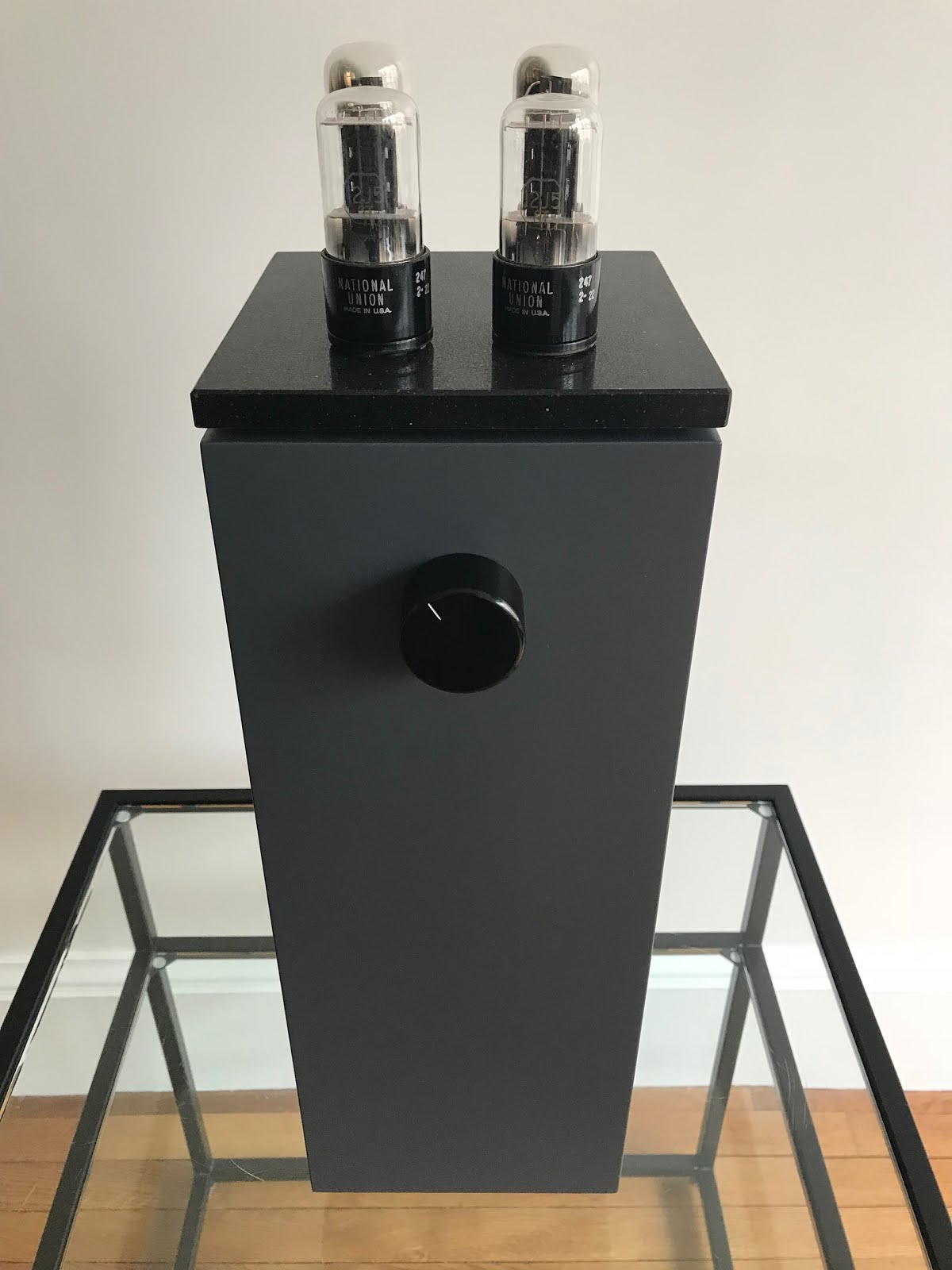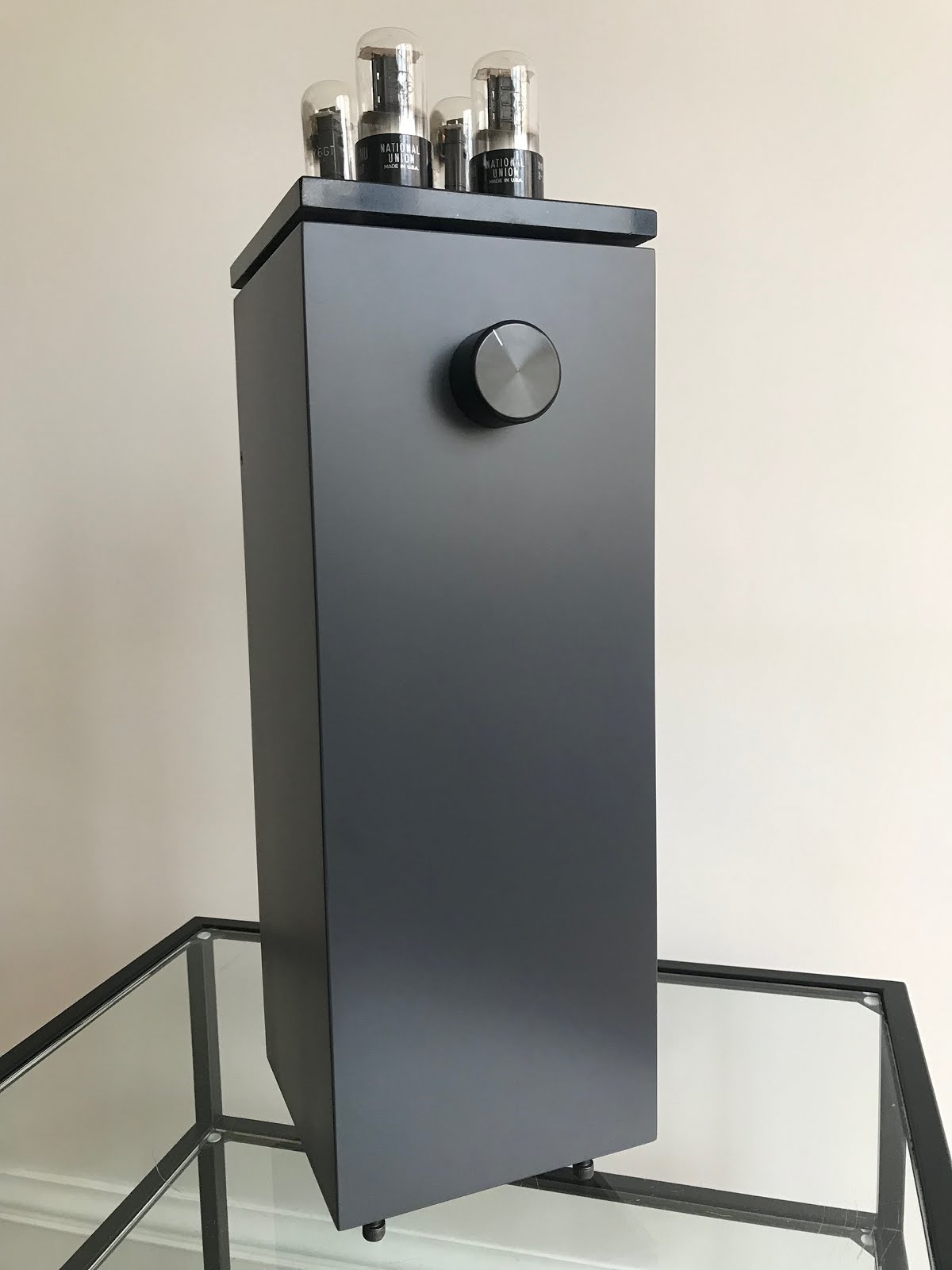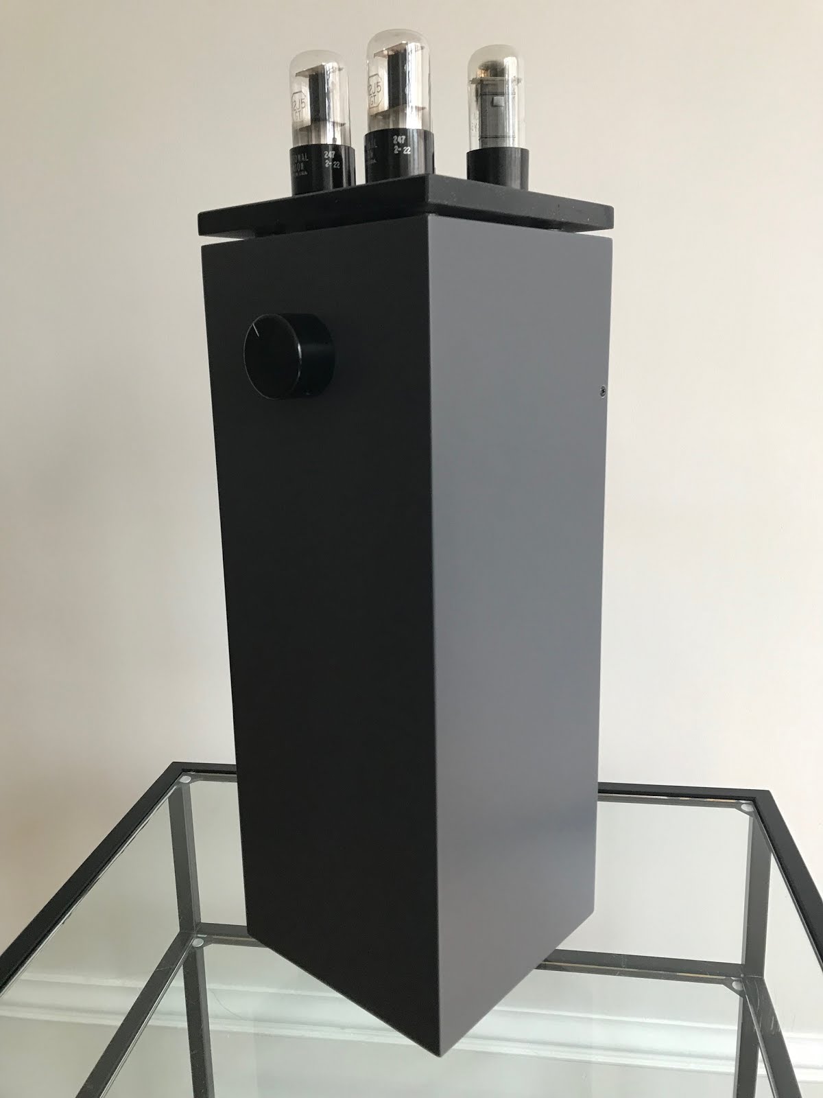The design of The Lighthouse integrated amplifier has involved aesthetics as a priority while its design is about tube and high technology. Everything started a couple of years ago when a friend of mine asked me for thinking about an easy to build DIY amp project at a very low retail price. So easy that he could even make it. It finally led to a stereo single ended tube amplifier called “6Y6 amplifier kit” suggested at 300€ retail price. I stocked three of them that i sold in a few weeks. The first one was installed by another good friend of mine in a coffee shop in Brittany, the second one was purchased by a very good customer of mine and the last one was sold as an assembled kit for another good friend of mine, Philippe F. I put it into a wooden box of bottle of wine in vertical position with the tubes at the very top of the box. Like a lighthouse… He liked it very much both in sound and aesthetic terms, so he decided to help me financially in manufacturing a small series of 10 amplifiers like his “lighthouse” with a high end finish. Ladies and gentlemen, The Lighthouse!