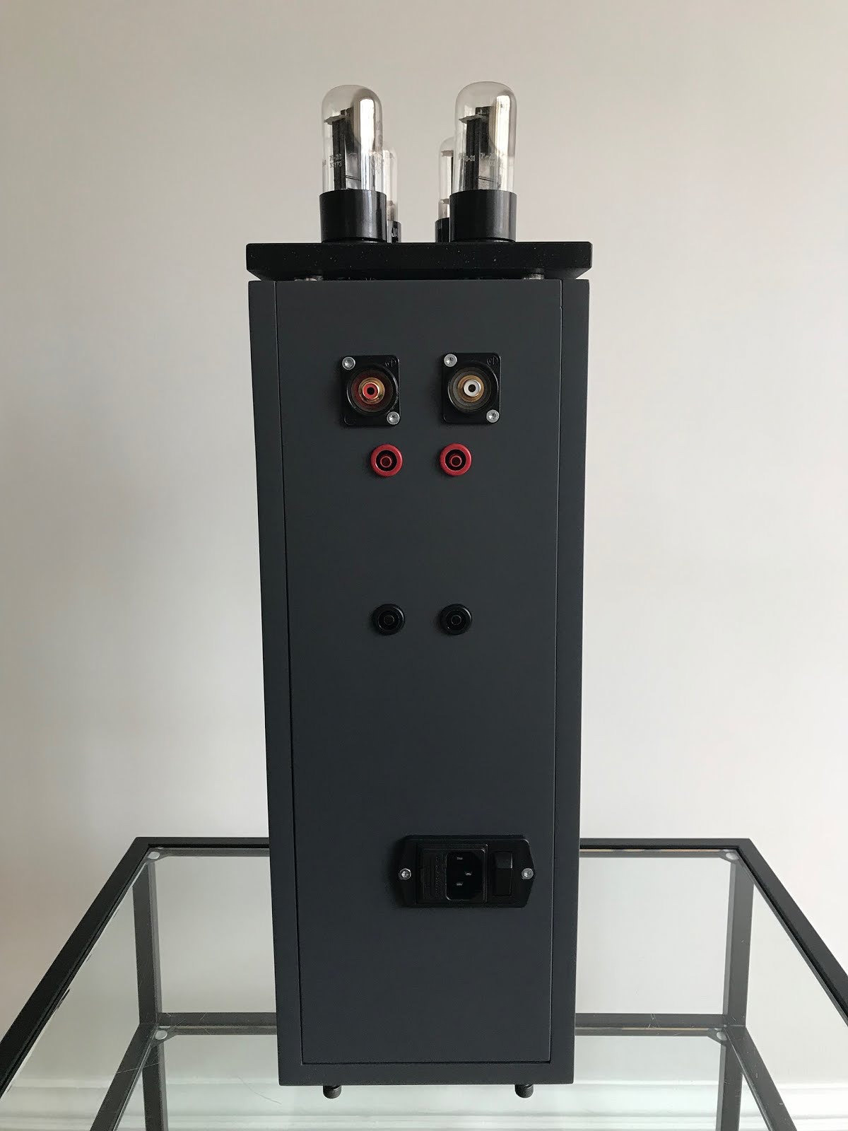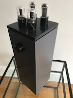 The Lighthouse is delivering 2 x 6 W (4 ohms). It has one Neutrik RCA input and one pair of M-Connect female copper-beryllium banana connectors as loudspeaker outputs on each channel. The sensitivity is about 560 mV for full power, input impedance is 100 K and volume control is an Alps Blue potentiomer. There are four holes and four screw inserts under the Lighthouse for 6 mm spikes if necessary. Dimensions : 150 x 410 x 150 (W x H x D) w/o tubes, weight : 8.5 kg. Price : 1150 euros (inc. 20% VAT, shipping costs not included).