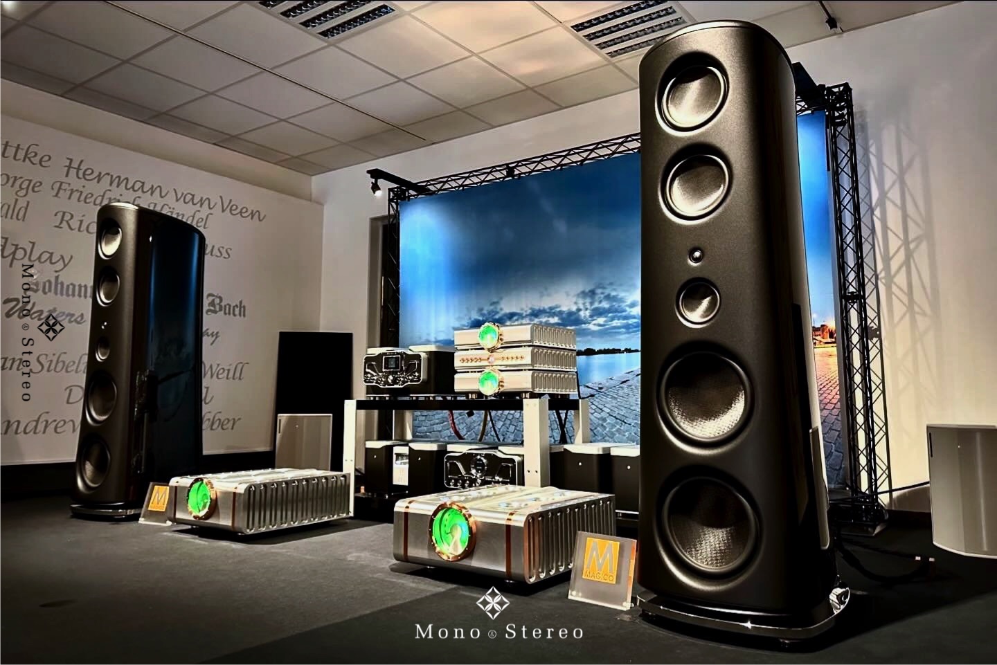 Magico M7 speakers with Dan D’Agostino | Master Audio Systems Relentless preamplifier and power amplifiers, WADAX streamer, and DAC and IKIGAI audio KINZAN cables at the Alpha High-End event in Belgium this weekend.
