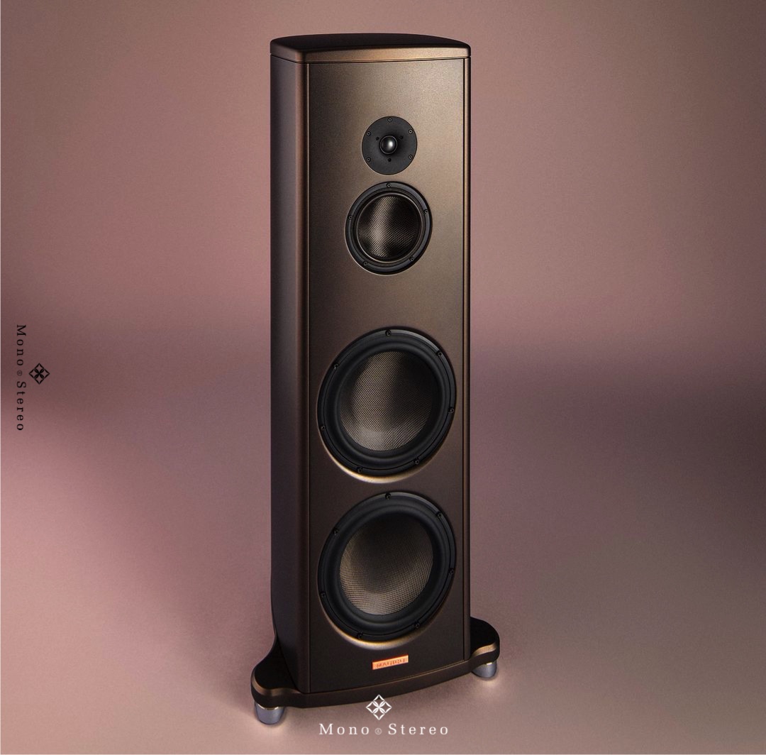 Magico S5 Speakers in a captivating and vibrant Sienna Bronze Softec finish.