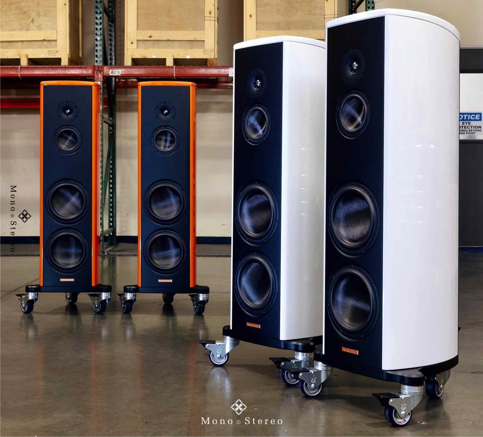Two pairs of High Gloss Magico S3 loudspeakers nearing completion. “Whether you like your speakers tastefully understated or daringly different, Magico has you covered.”