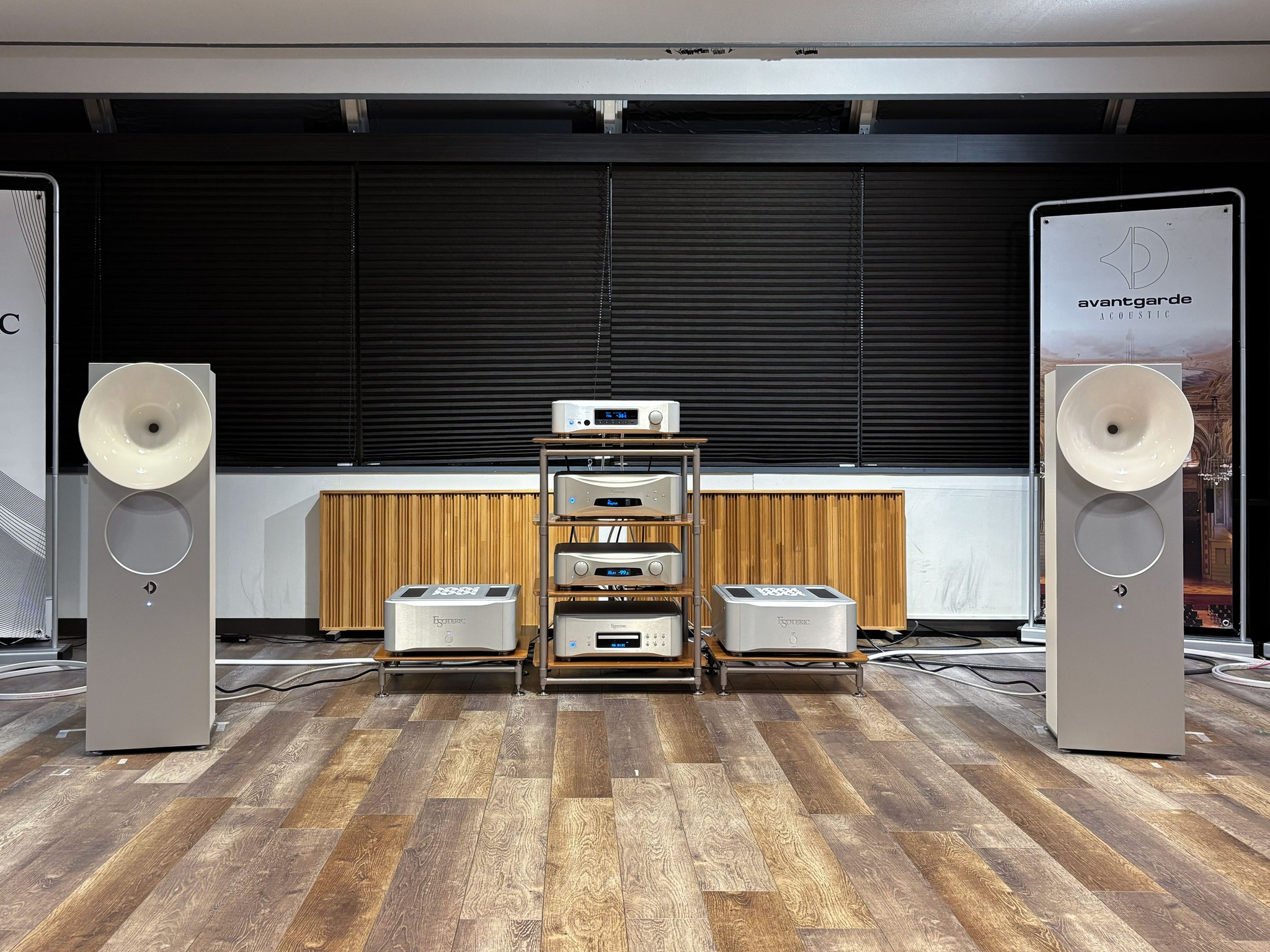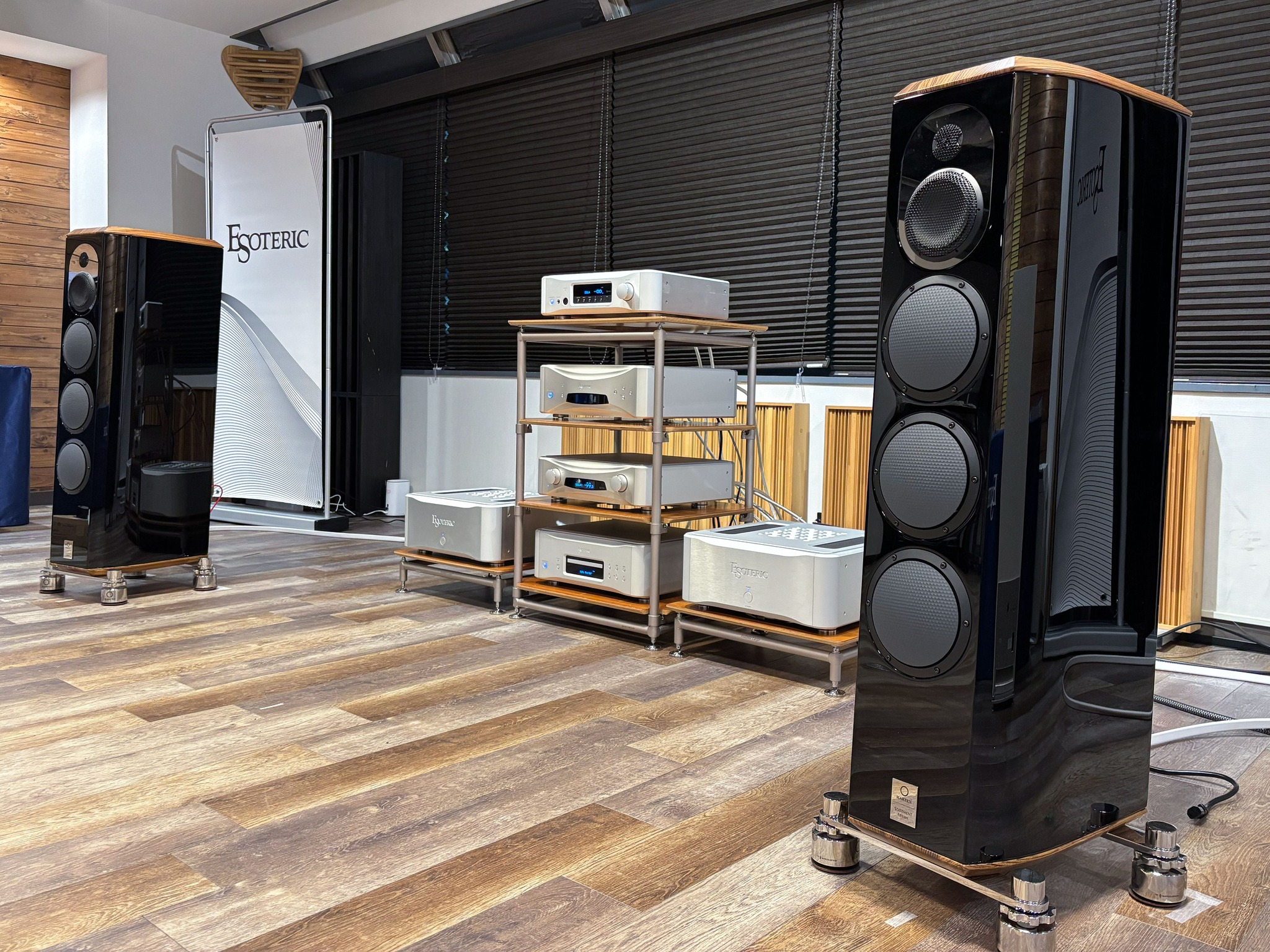 The recently announced ESOTERIC N-05XE network DAC preamplifier with Marten and Avantgarde Acoustic speakers at the CAVIN Osakaya showroom in Osaka, Japan.