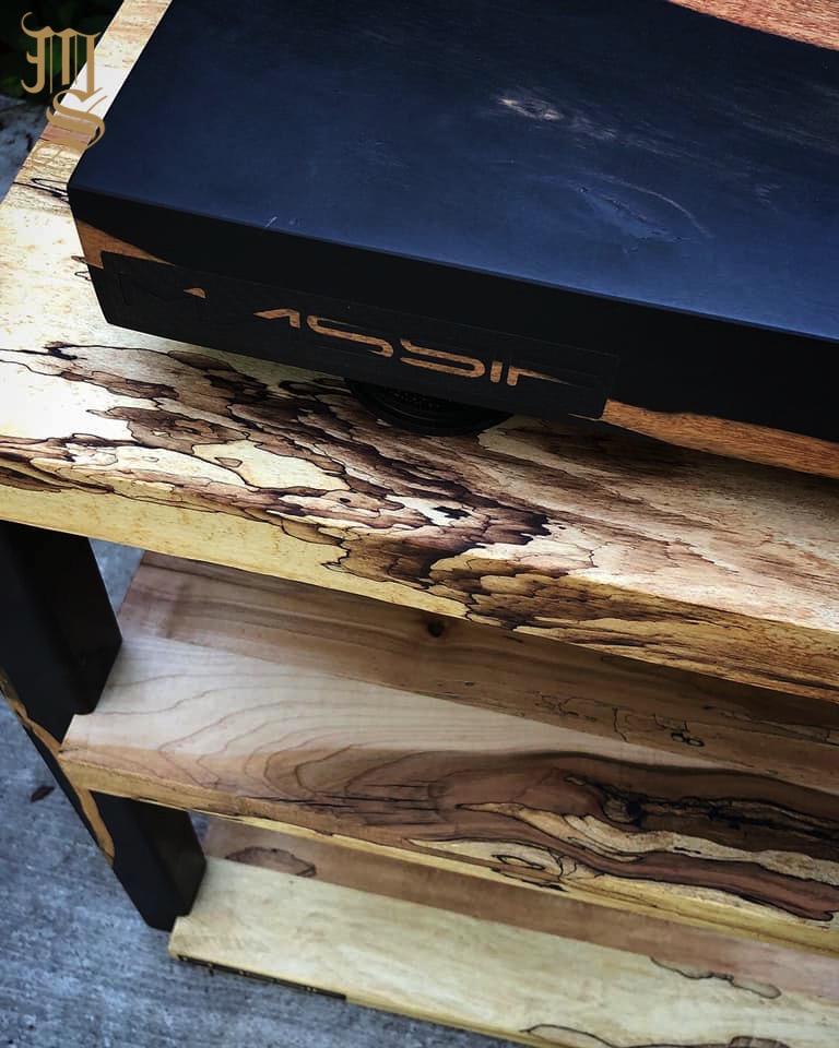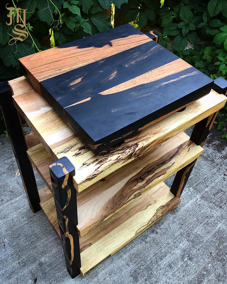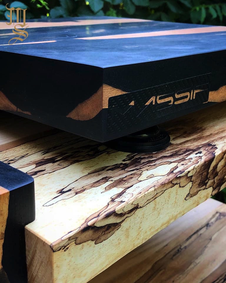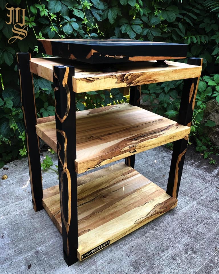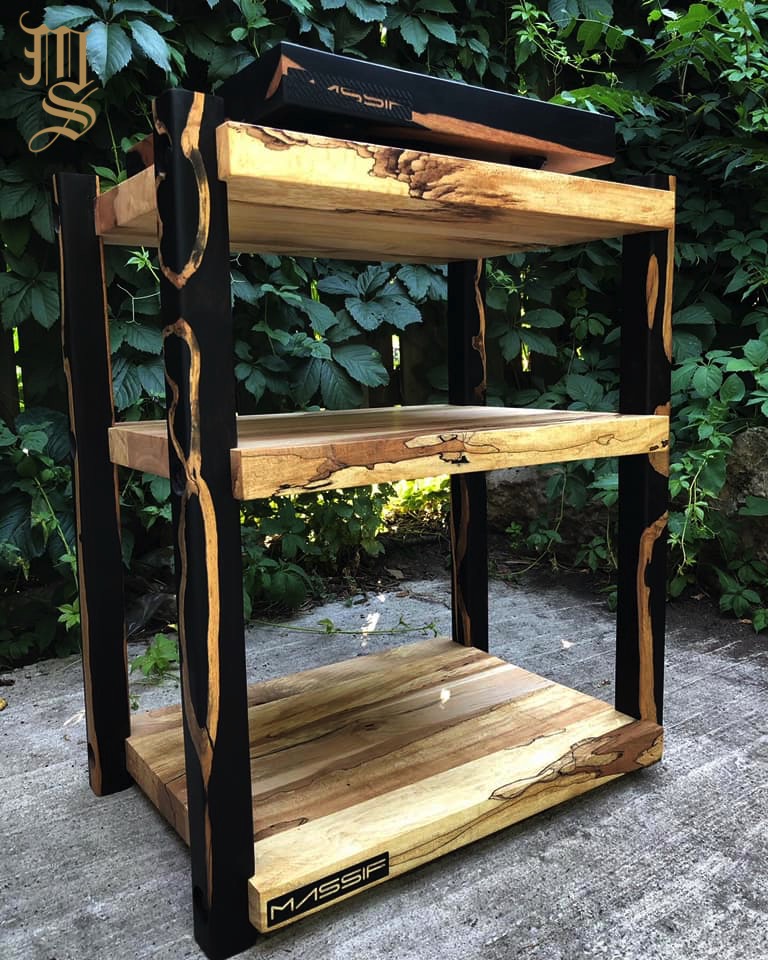 MASSIF AUDIO DESIGN AUDIO RACK July 1, 2020 Matej Isak Most unique and beautiful Massif Audio Design Mpingo and spalted maple audio rack with a 2” thick Gabon ebony turntable platform. One of a kind.