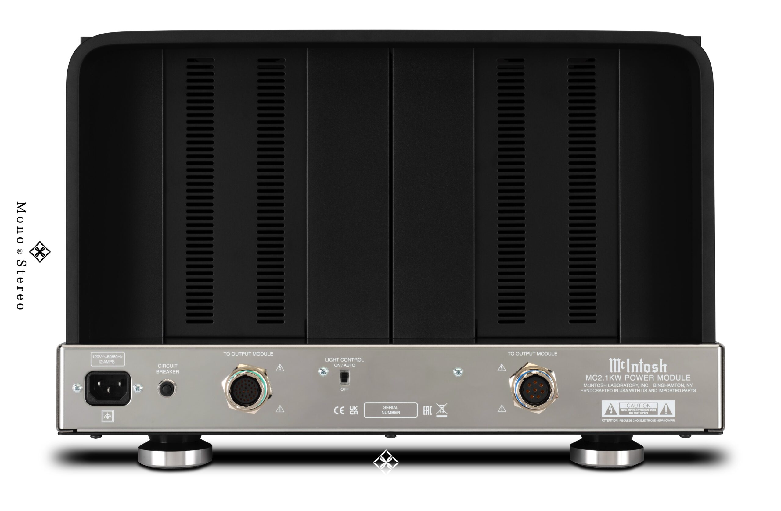 Four McIntosh Monogrammed Heatsinks™ are found on each Power Module, which maintain efficient heat dissipation and ensure consistent audio quality from the first note to the last. In addition, the dual sets of balanced and unbalanced inputs on the MC2.1KW provide added system flexibility, conveniently providing listeners with the ability to connect to more than one preamplifier and easily switch between vacuum tube and solid state signals.
