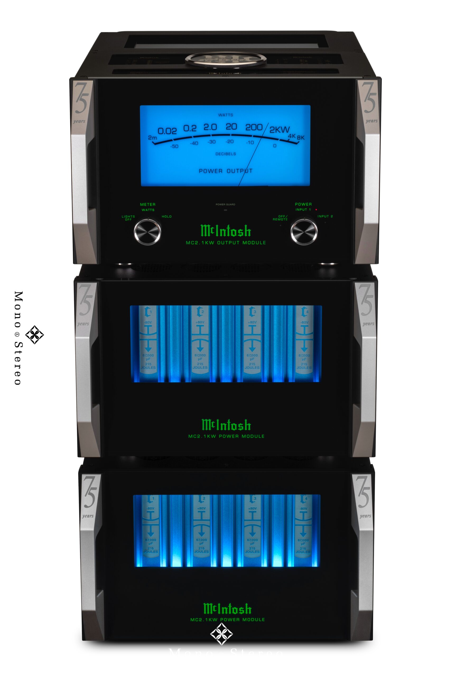 The new MC2.1KW transforms the two-channel home audio reproduction experience, marking the brand’s 75th anniversary with pristine, powerful audio unlike ever before. To commemorate this milestone, the first 75 pairs of MC2.1KW sold in 2024 to each country McIntosh is distributed in will include special anniversary badging with “75 Years” engraved in the handles and a special medallion with their 75th logo on top, establishing these models as a true collector’s items for McIntosh enthusiasts.