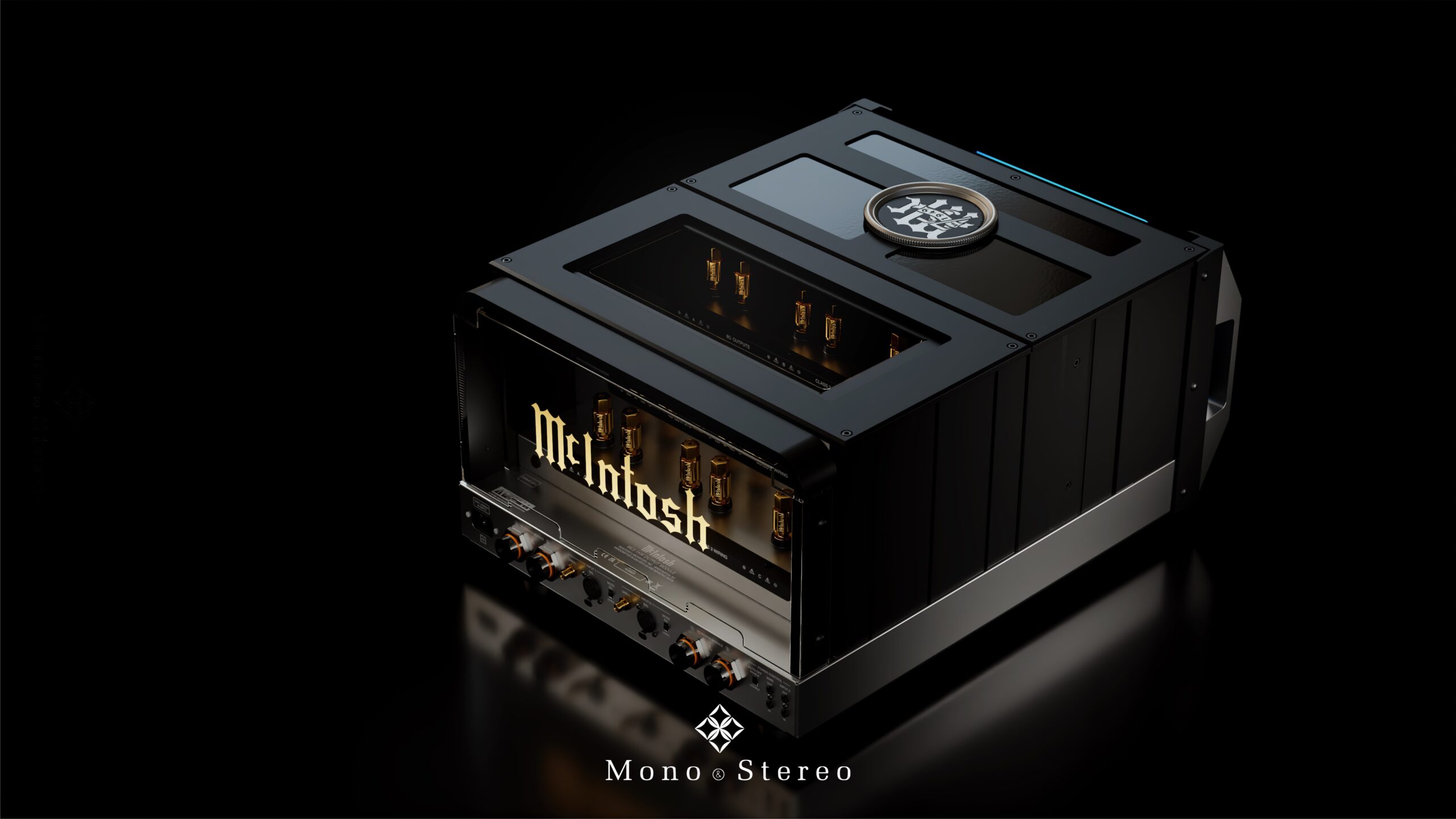Crafted with stainless steel chassis polished to a gleaming mirrored finish and immaculate metal casework, the MC2.1KW is a visual masterpiece with black glass front panels, illuminated logos, rotary knobs, aluminum handles, and a responsive blue Watt meter complete the timeless design.