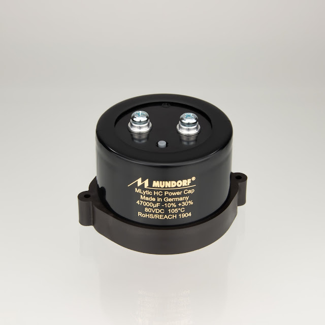 The Mundorf MLytic® power capacitors offers ultra-low ESR and ESL due to a patented internal connection technique. These capacitors are consequently optimized for audio purposes. “They can handle houndreds of amperes and supply extreme pulse currents. That is why even massive bass attacks are performed absolutely authentic and punchy.”