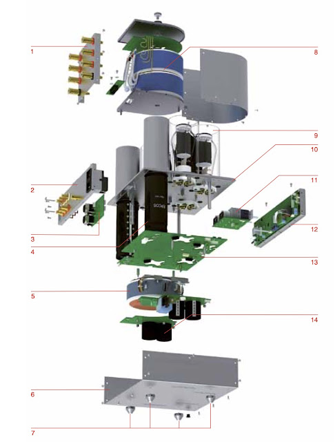 The shock-absorbing characteristics are completed by four conical feet on the amplifiers themselves. These feet are made from Arcap© with Delrin© resin tips, that sit precisely in the cups machined in the upper plate of the Nagra VFS.