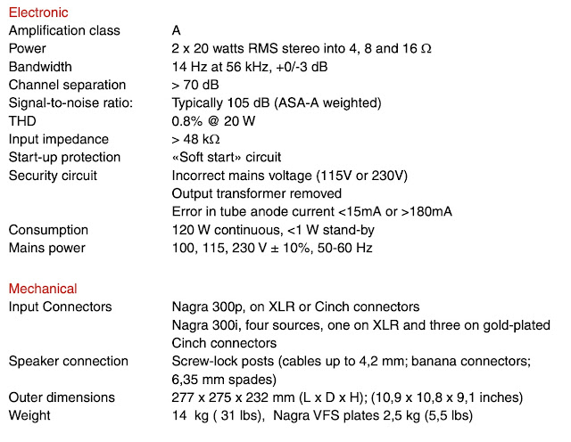 With a bandwidth ranging from 14 Hz to 56 kHz and a signal-to-noise ratio exceeding 105 dB, the Nagra 300i and 300p have nothing to envy from the best transistor electronics available today. However figures are just one aspect: it is while listening that these units reveal the rest.