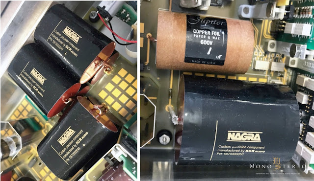 A large proportion of the HD PREAMP HV components were manufactured for Nagra under very strict specifications. All components along the signal path were carefully and finally selected after hours of intensive listening sessions. Only high-quality capacitors are used in the HD preamplifier, such as polypropylene capacitors specially manufactured by SCR for high-voltage decoupling and stages coupling, and paper in oil and copper foil custom made by Jupiter for grid coupling.