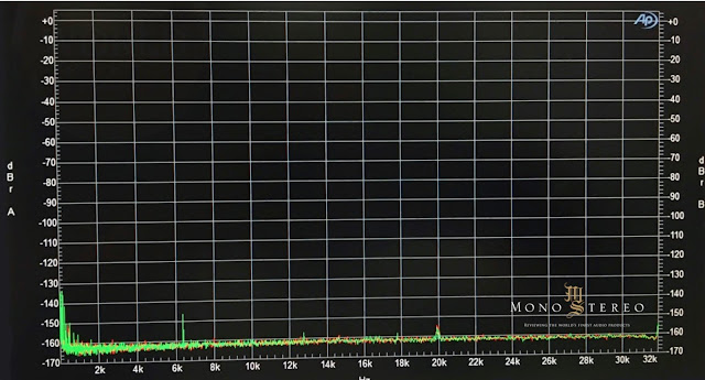 The noise floor level at the preamplifier output, measured at -160dB. This is quite spectacular provided measurement and unusual for tube electronics.