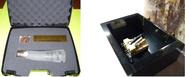 Aidas Mammoth gold is the new and the most advanced of Aidas production. The Aidas Mammoth Gold package contain the cartridge with mammoth ivory body stabilized. The body made of 21,000 years old Siberian Woolly Mammoth tusk. The ivory properties are closest to a human bones and has similar resonance characteristics, not only to skeletal bones, but Auditory Ossicle bones that located in the middle ear. So we have complete harmony presented. The cartridge packed in the stone box made of Siberian semi-precious stones. Also the package contains the sealed 0.5L bottle of Siberian Mammoth vodka. The mounting ware, the wrenches and the manual all included. All this inside the attractive black plastic case.