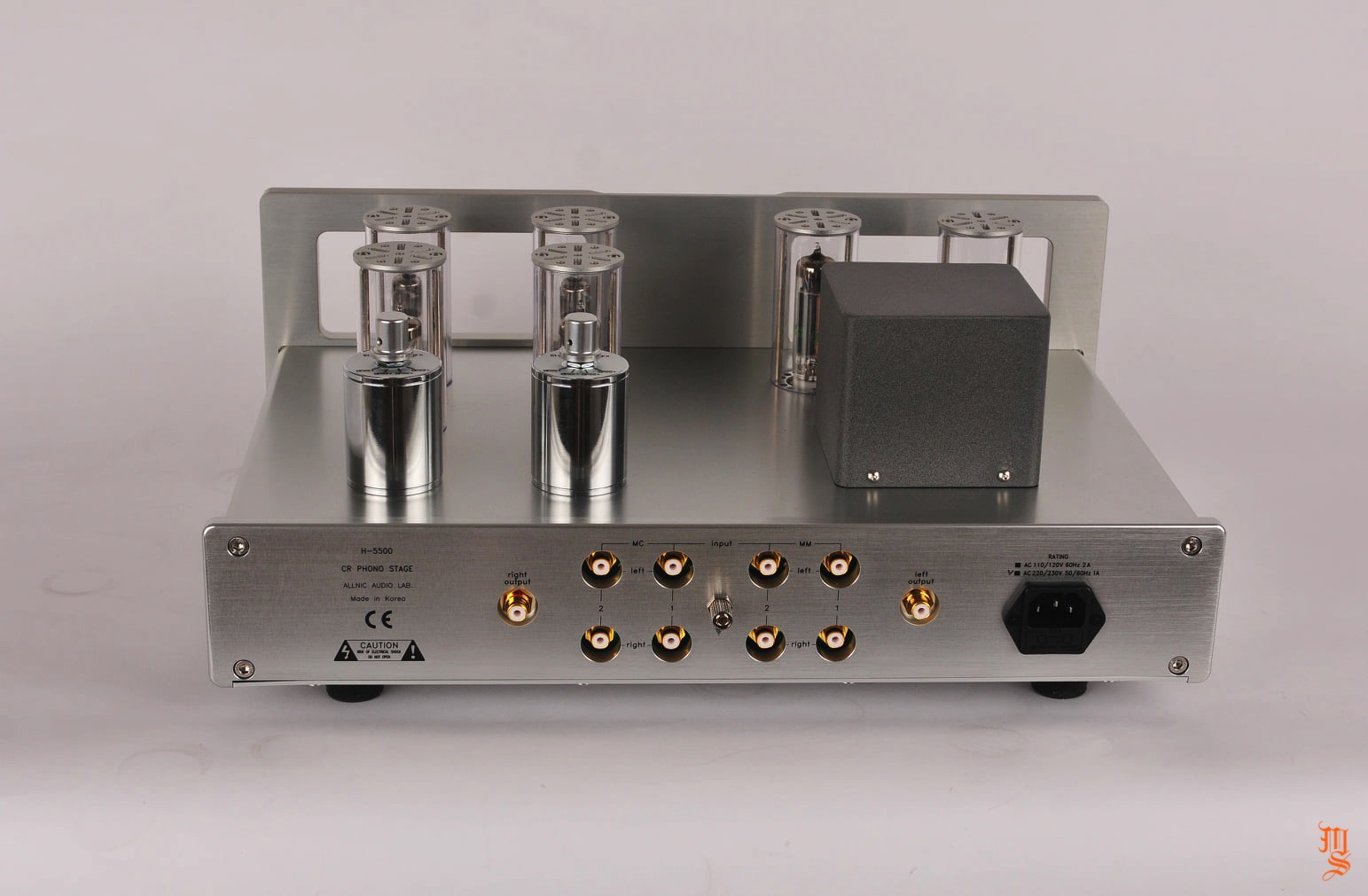 Hammertone Audio writes: “Kang Su Park has informed us that the newest Allnic phono pre-amp, the H5500, will be shipping by the close of the month. A whole bunch of new fun to be had – the chassis is now almost all aluminium, the power supply has been ‘stiffened’ (his term – can only mean good things), tube regulated (E180CC), dual inputs (MM, MC) and much more. Intro pricing should be US$4500.00”