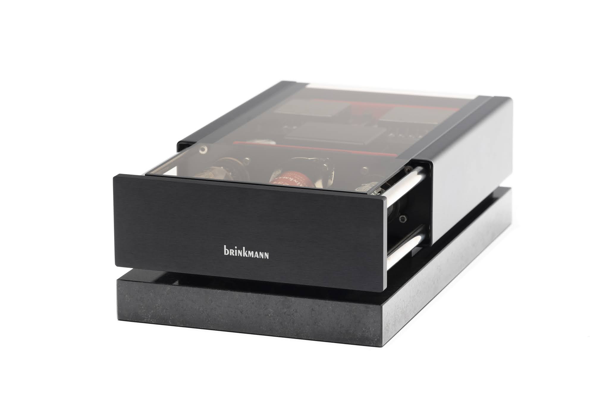 In 2007, Brinkmann introduced their bespoke “Sinus” Direct Drive and Belt Drive motors, designed and manufactured in-house exclusively for use in Brinkmann Turntables. Sinus motors required more current than the Pabst units utilized in earlier Brinkmann ‘tables, which necessitated the development of RöNt II. The circuit was changed to a single ended class A topography which offered a smoother and more transparent performance. RöNt II utilized two high current, low resistance pentodes (PL36) and one full wave rectifier (5AR4/GZ34).